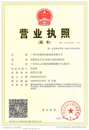 廣州市麥修拓包裝設備有限公司坐落于美麗富饒的有著悠久歷史的文化名城---廣州。是一家專門經營包裝設備...